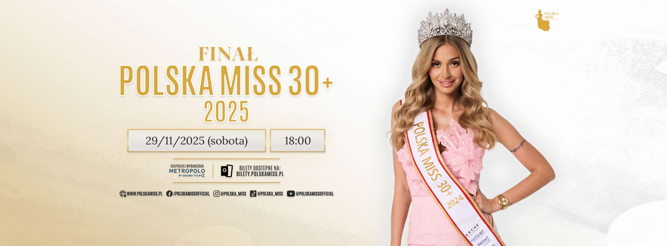 Najważniejszy wieczór roku w świecie konkursów piękności dla kobiet 30–39 lat w Polsce! Na scenie zobaczycie 34 finalistki z całego kraju, które zaprezentują się w pokazach kolekcji oraz w oficjalnych wyjściach przygotowanych specjalnie na ten finał. To eleganckie, pełne emocji widowisko, które co roku przyciąga widzów oraz media z całej Polski. Tego wieczoru poznamy nową Polska Miss 30+ 2025.